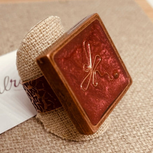 Red copper square ring 'Oil on canvas'