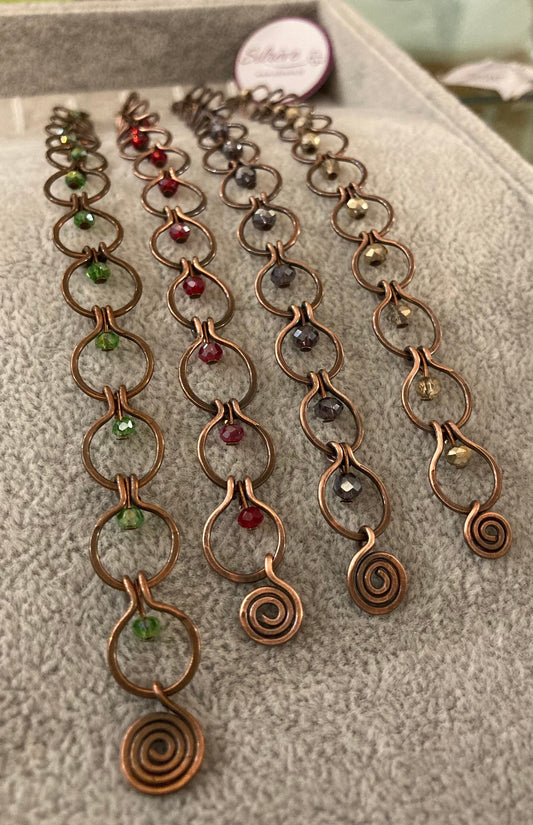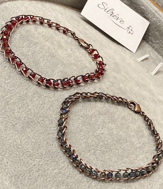 Hammered copper chain bracelet, antiqued and embellished with small crystals; mesh 0.5cm