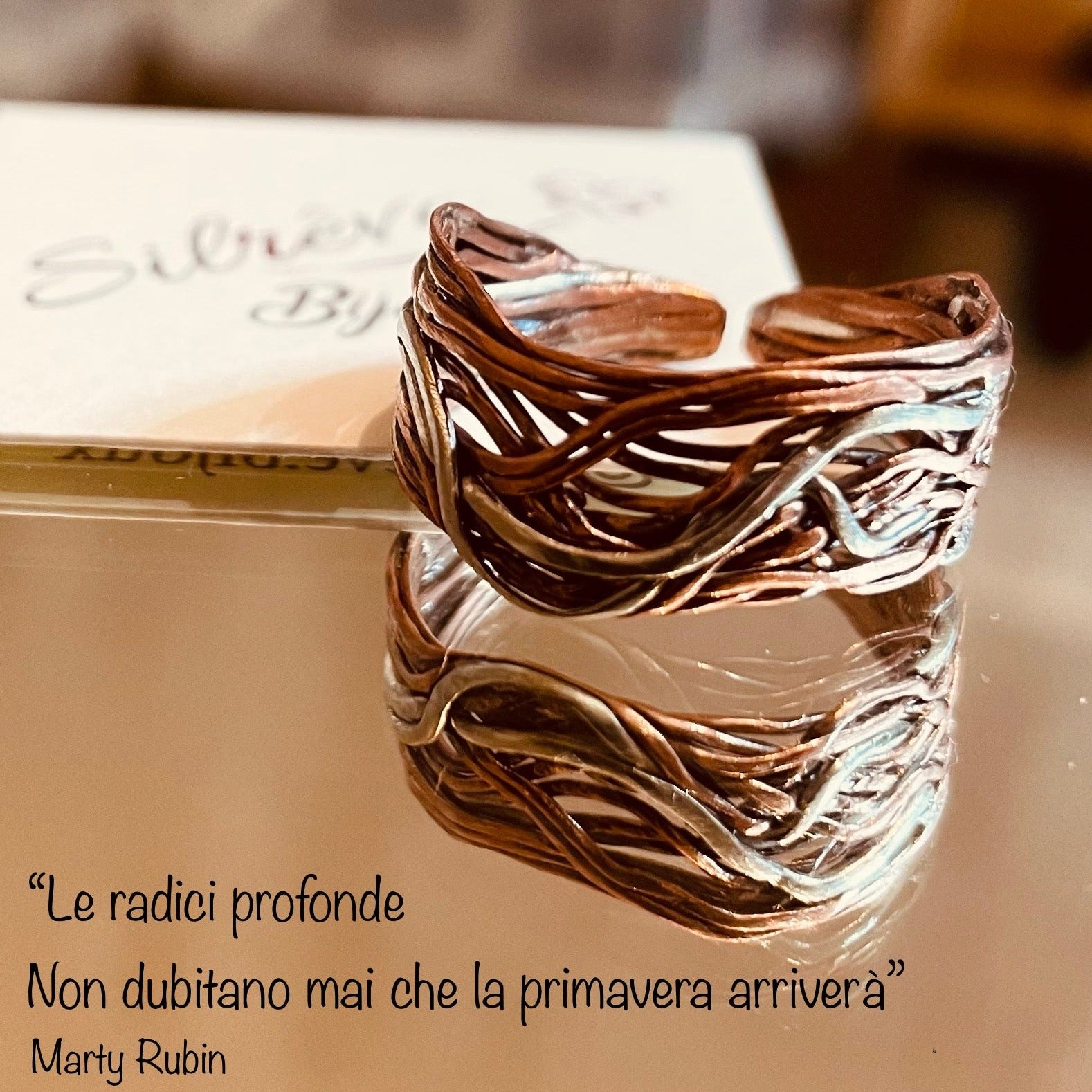 The structure is in copper, hypoallergenic (nickel free); the chain measures 17 cm with an adjustable closure.