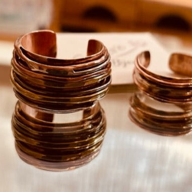 Anello in Bronzo con 'Sentieri' in Rame, Ottone e Argento; Sentieri che si alternano in percorsi paralleli, che spesso si incrociano e uniscono.