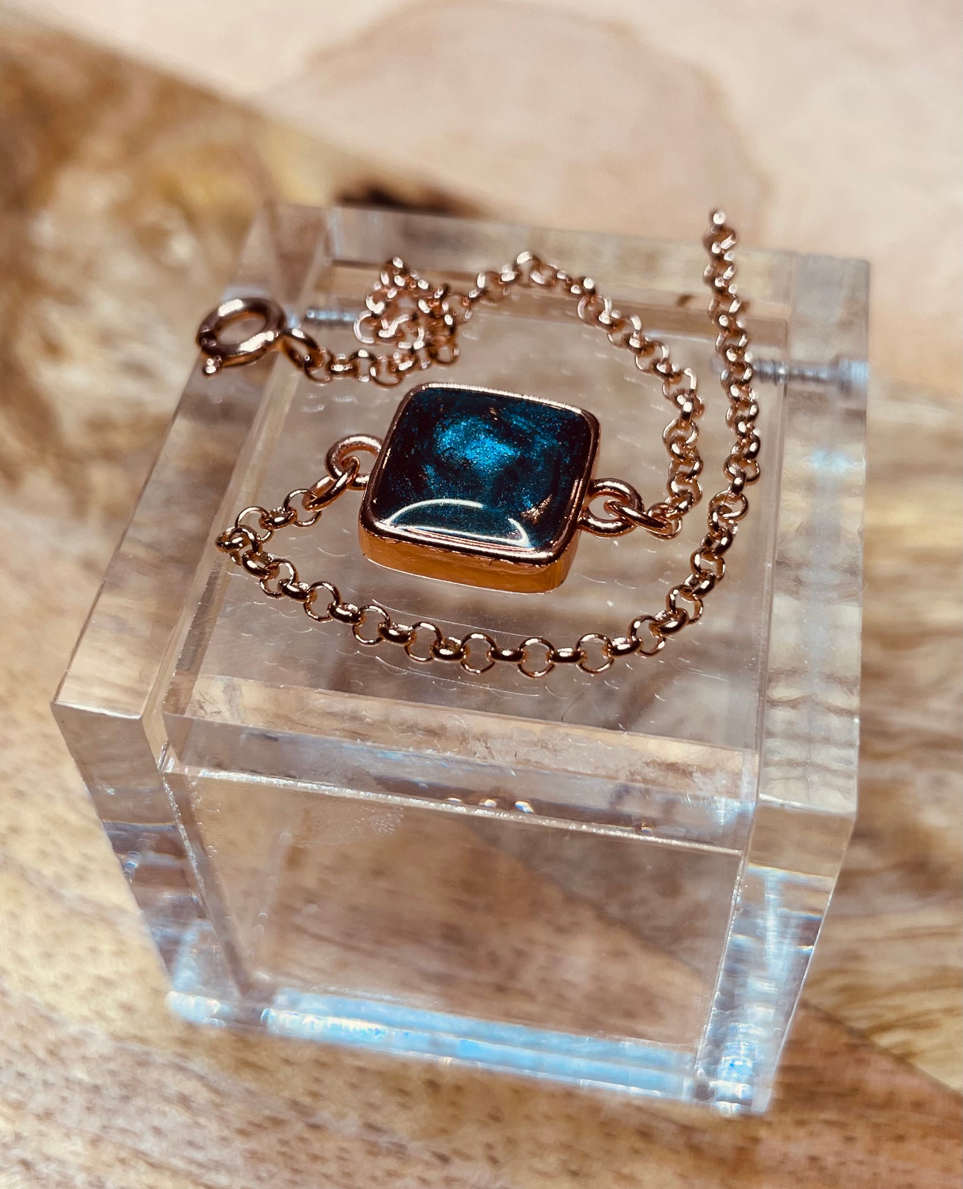 Rose gold steel bracelet with hand-enameled and vitrified square tray
