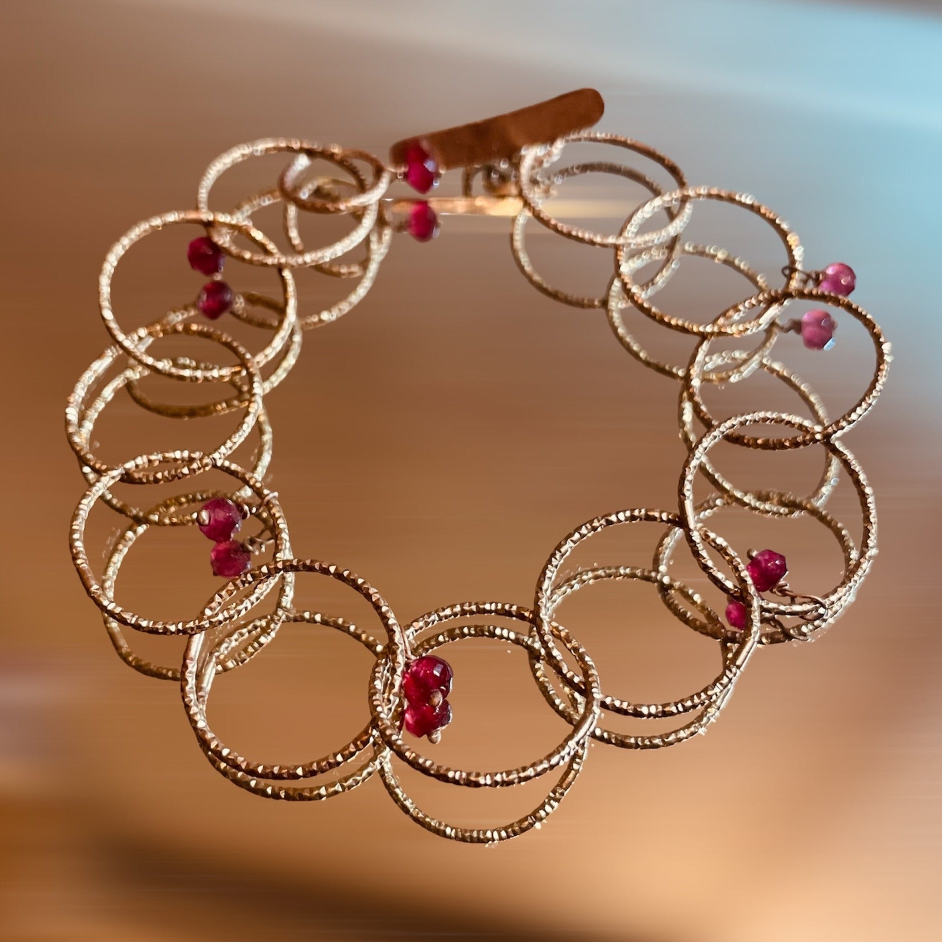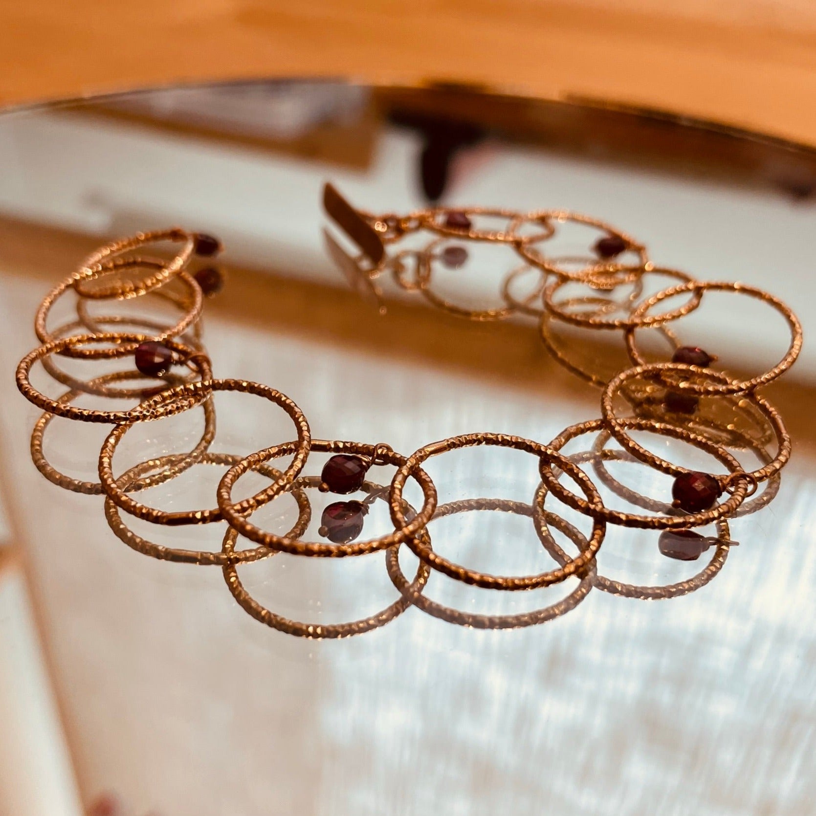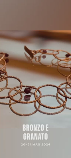 Bracciale in bronzo diamantato impreziosito da piccole pietre che donano un tocco di colore, mantenendo equilibrio nella semplicità e leggerezza del pezzo.