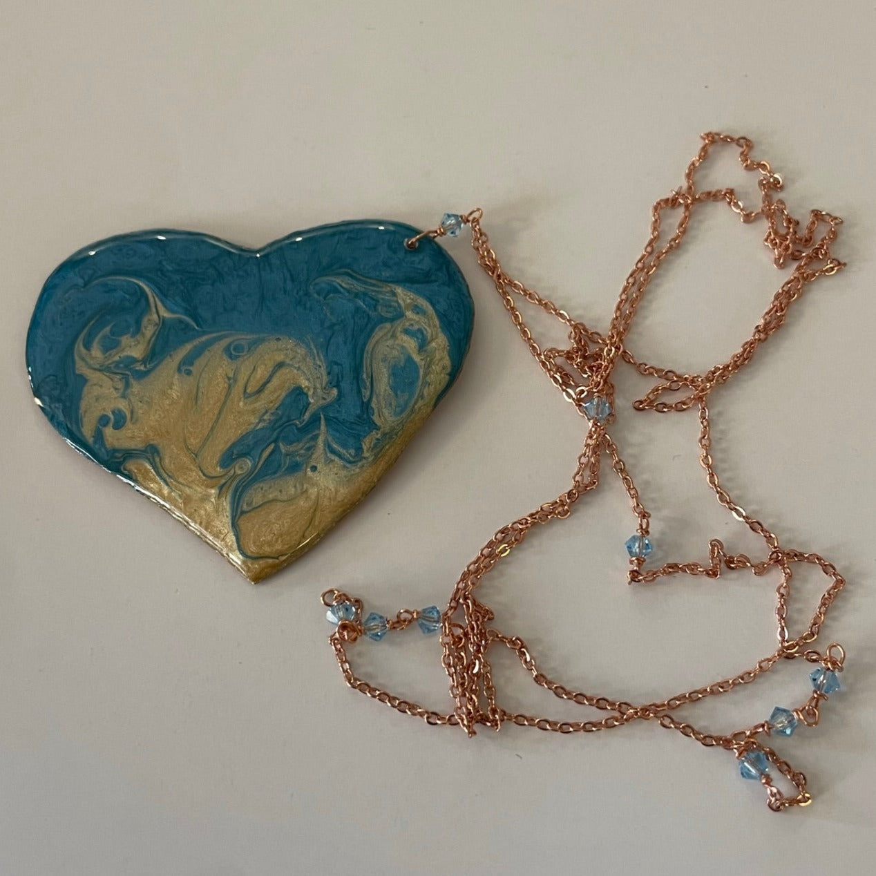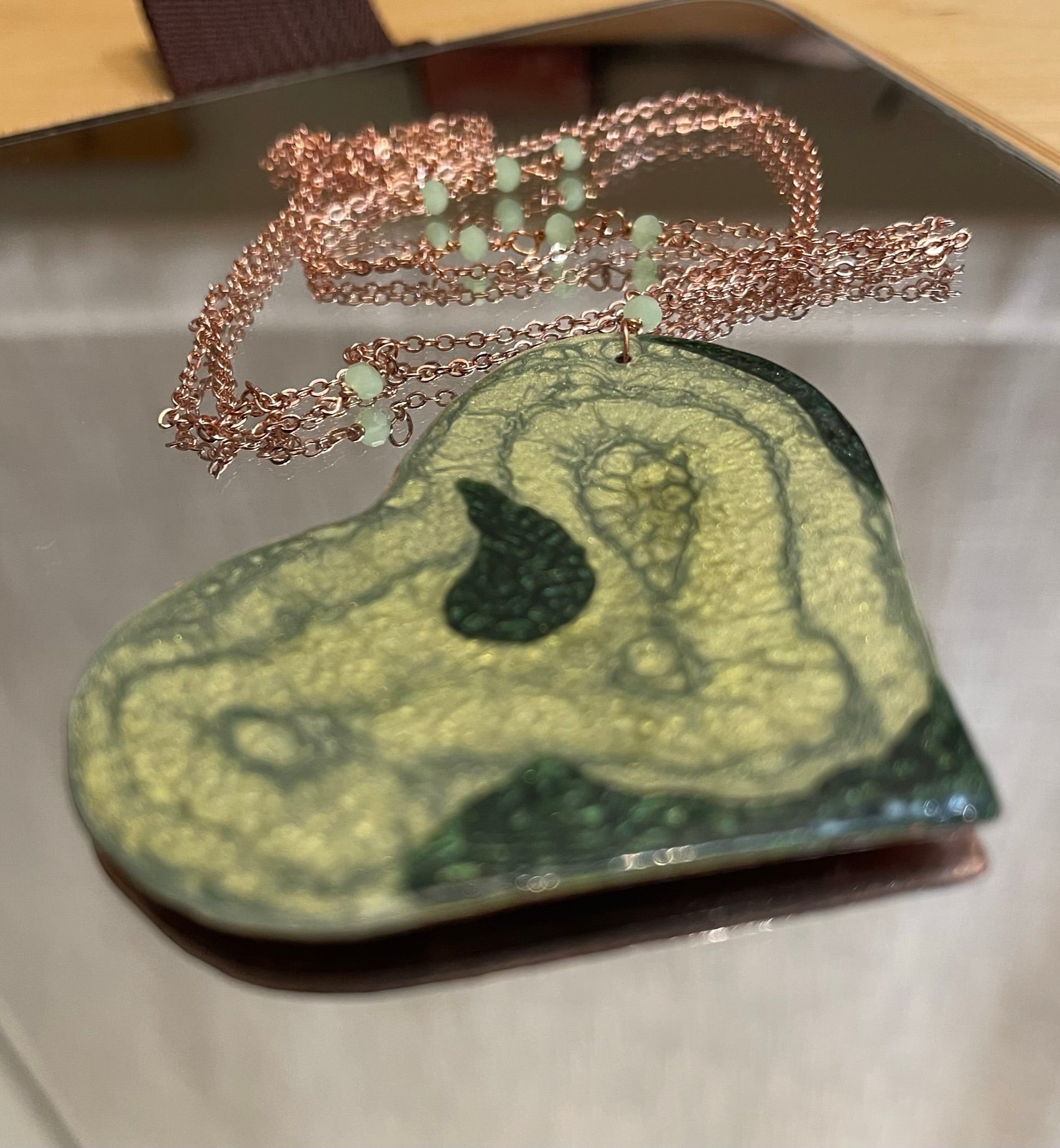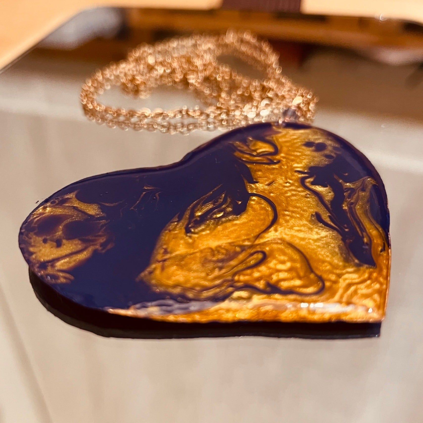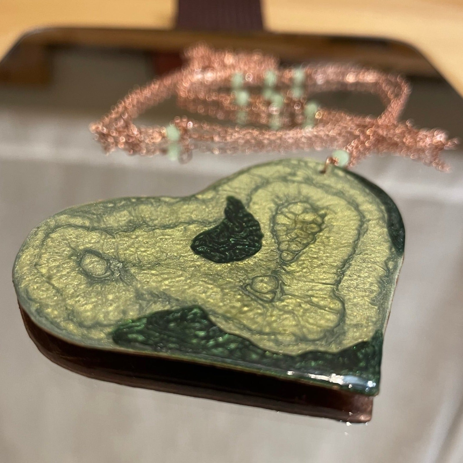 Copper necklace with square pendant, embellished with amethyst pearl.
