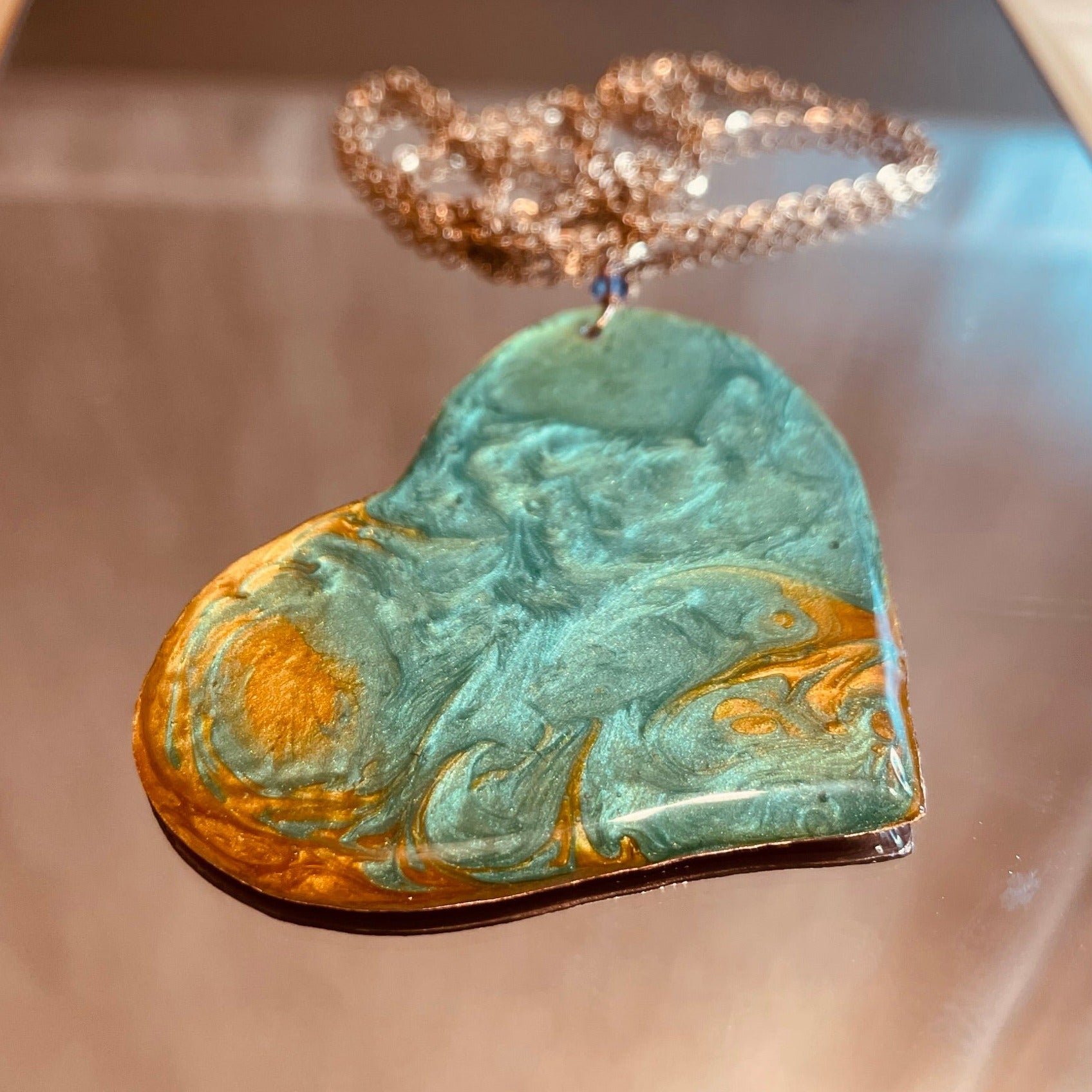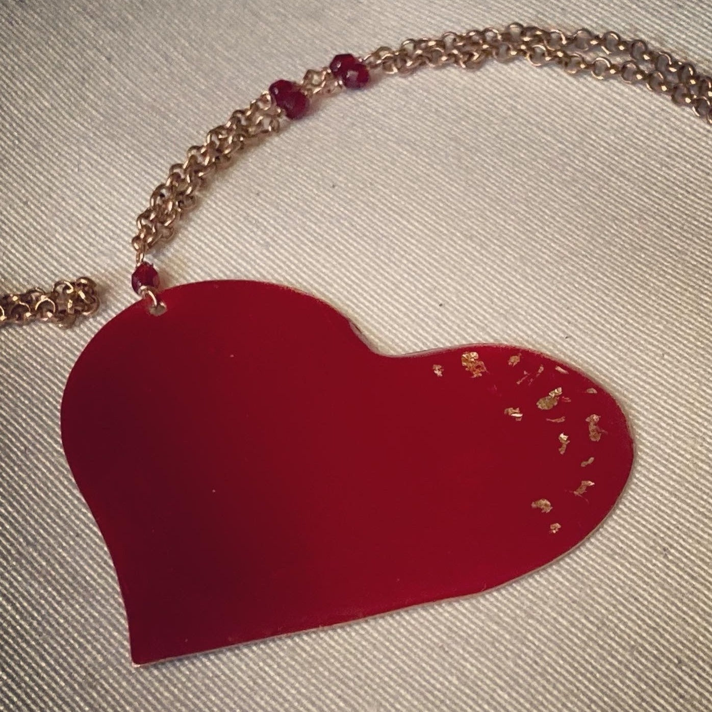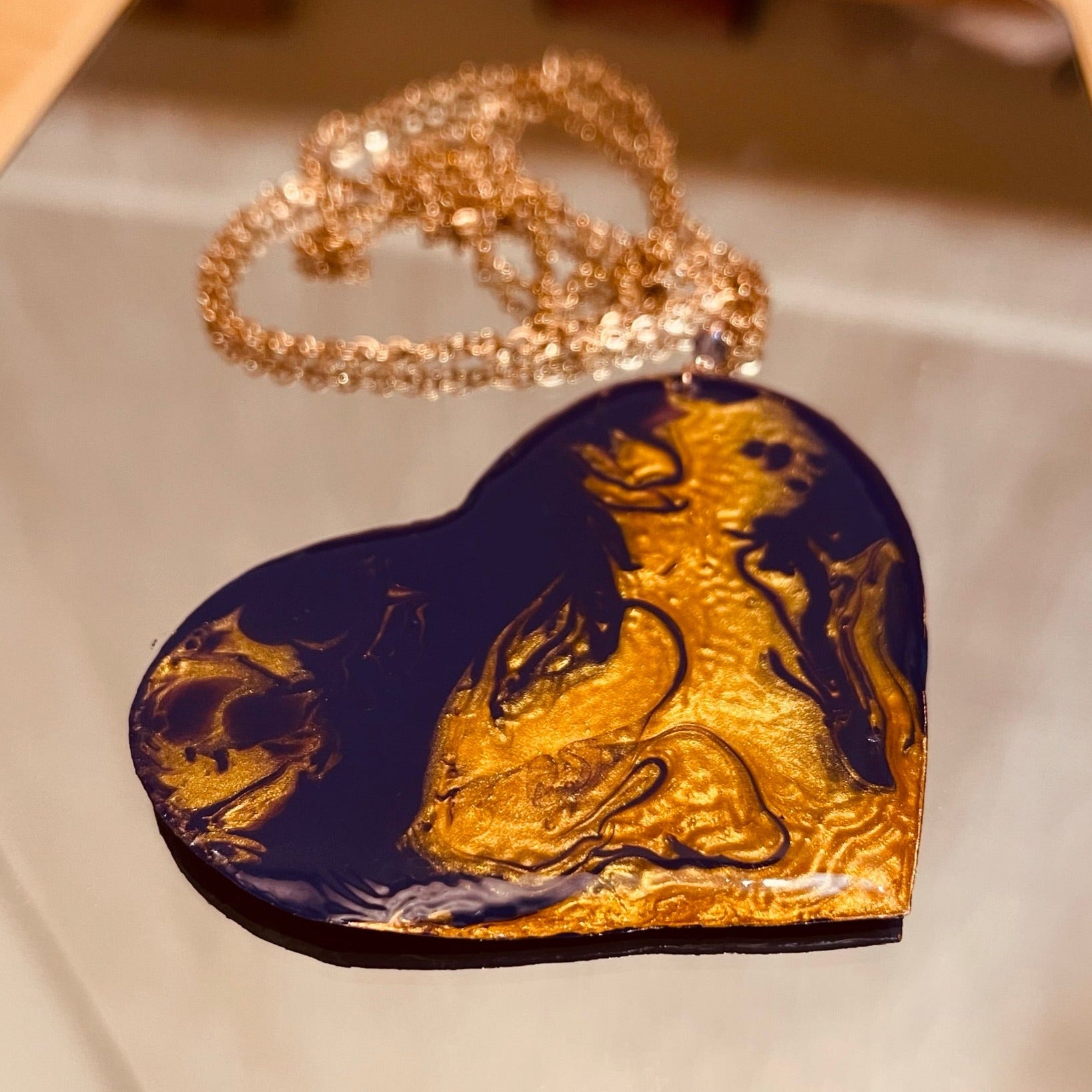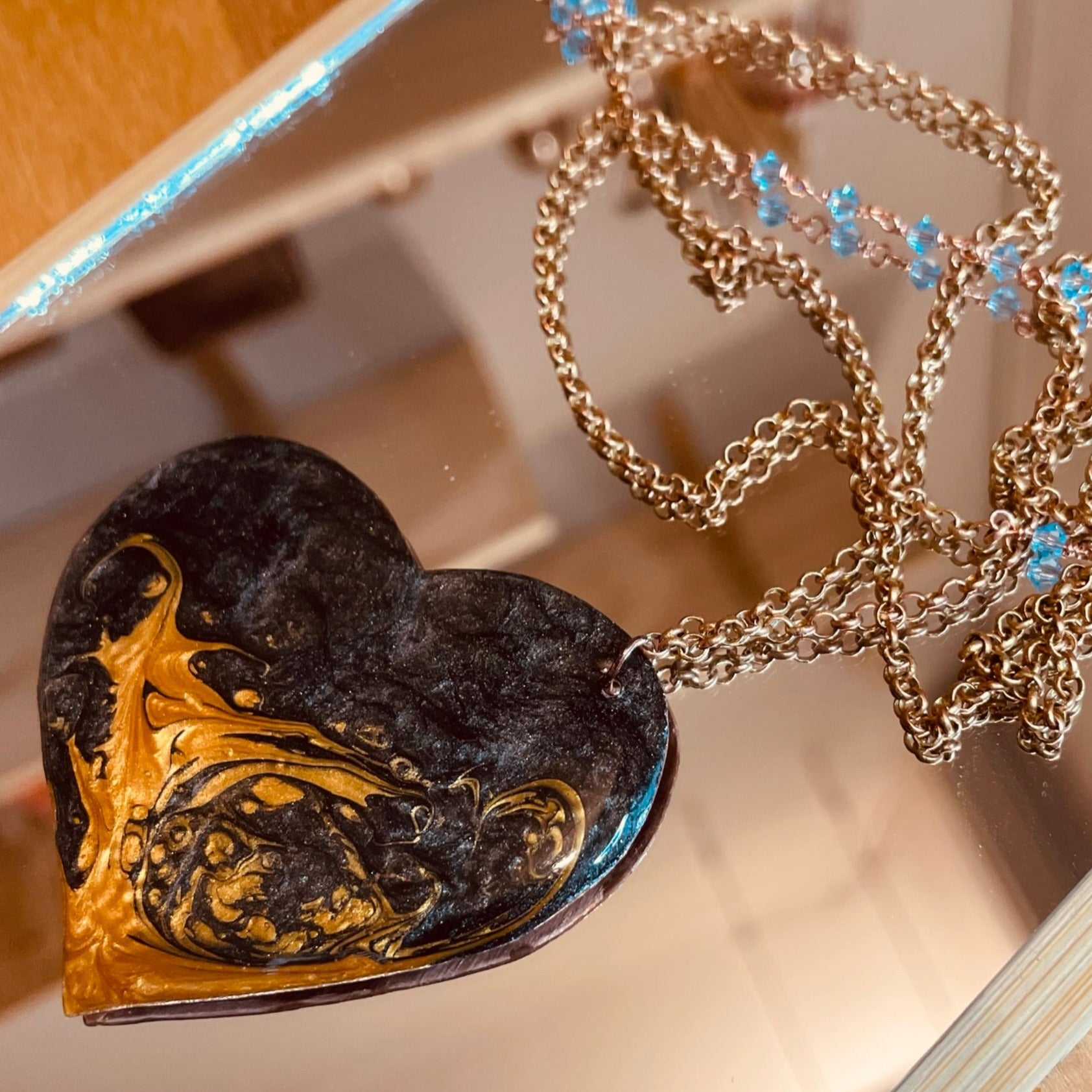 Copper necklace with square pendant, embellished with amethyst pearl.