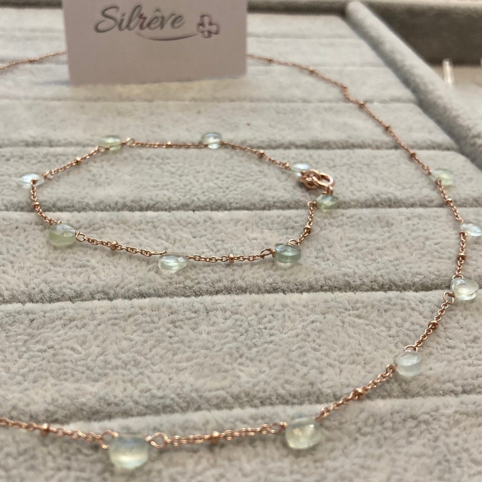 'Nodo orefice' chain bracelet made with 0.4 mm 925 silver wire, embellished with small 0.3 cm colored crystals.