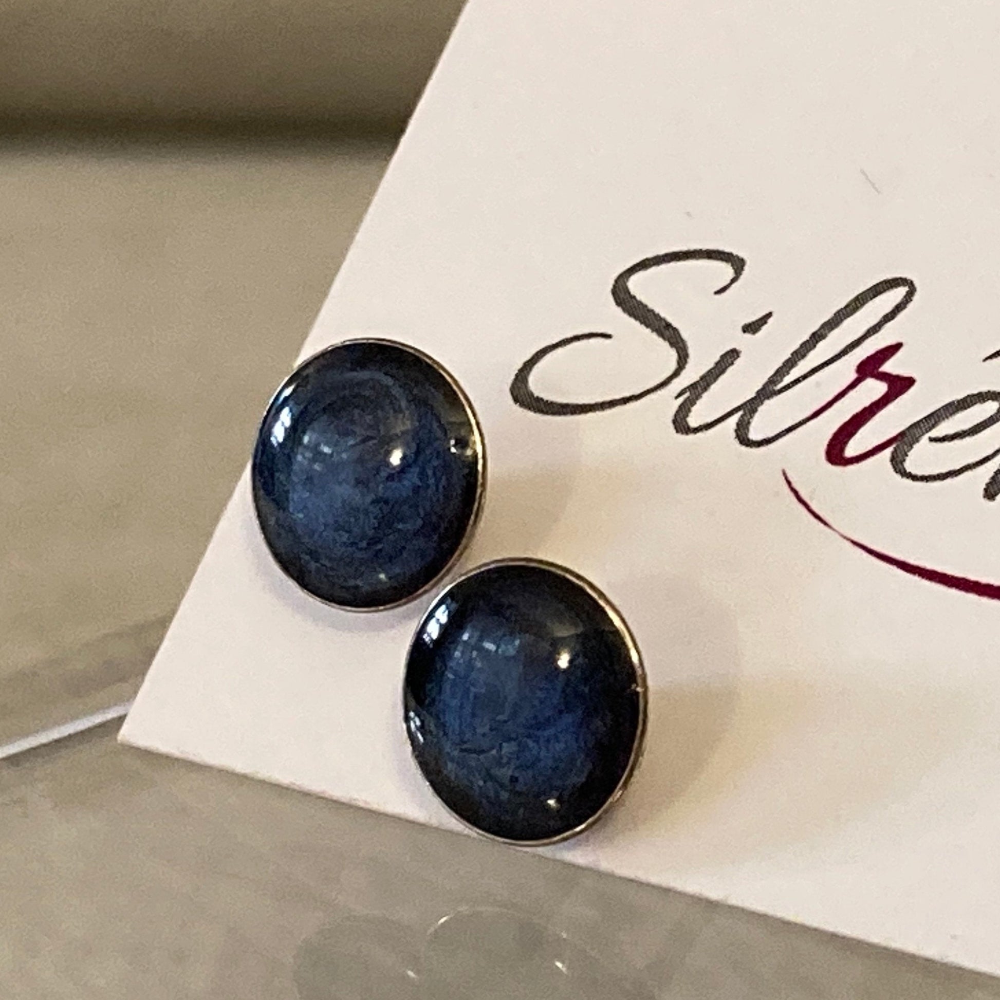Round stud earrings, in Ag. 925, enamelled and vitrified by hand