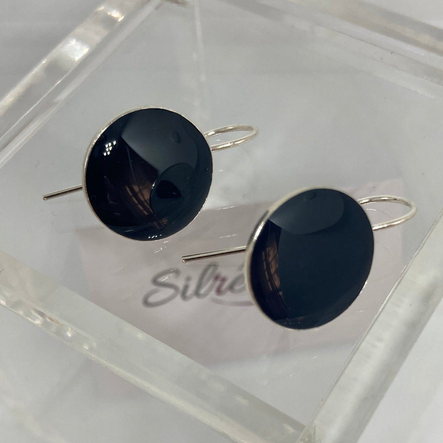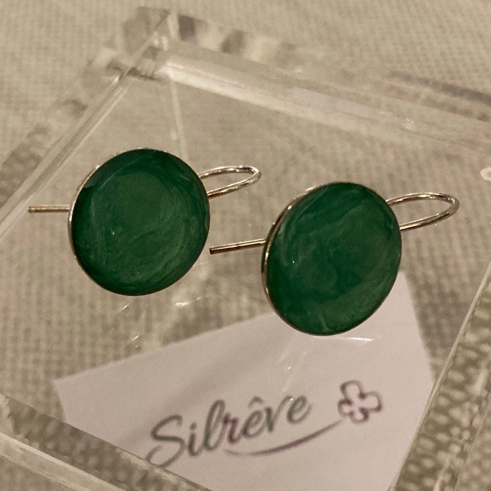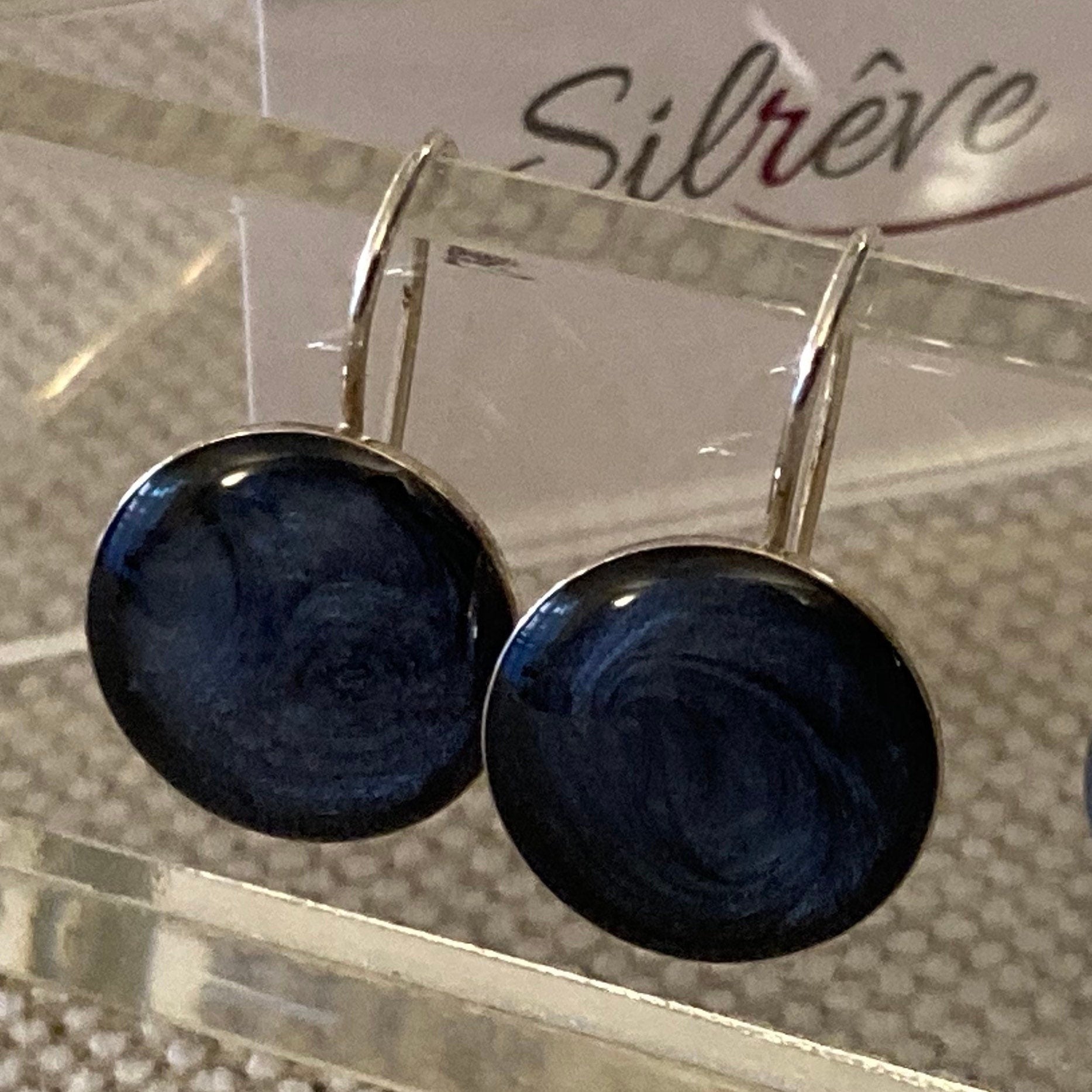 Round earrings, in 925 silver, vitrified and enamelled with elegant and sophisticated colours.