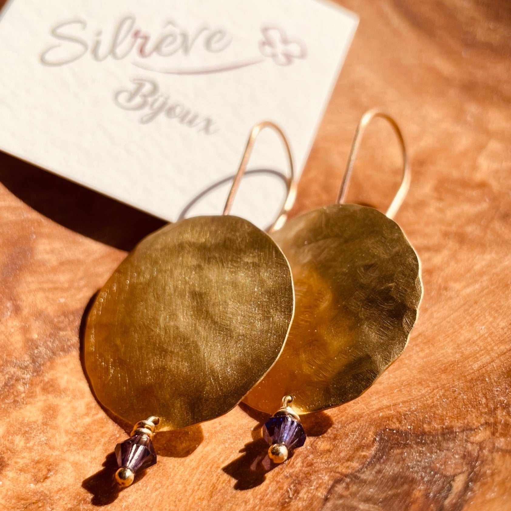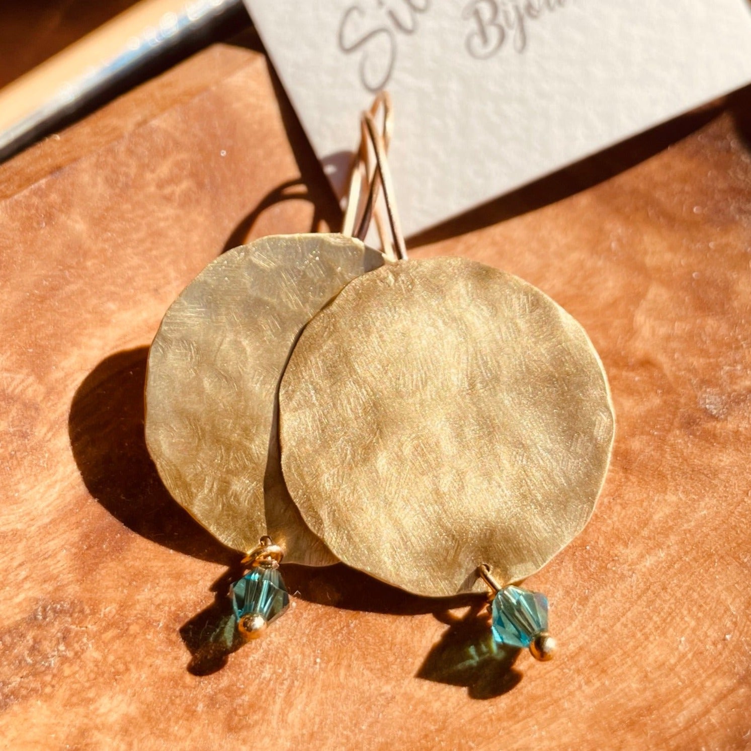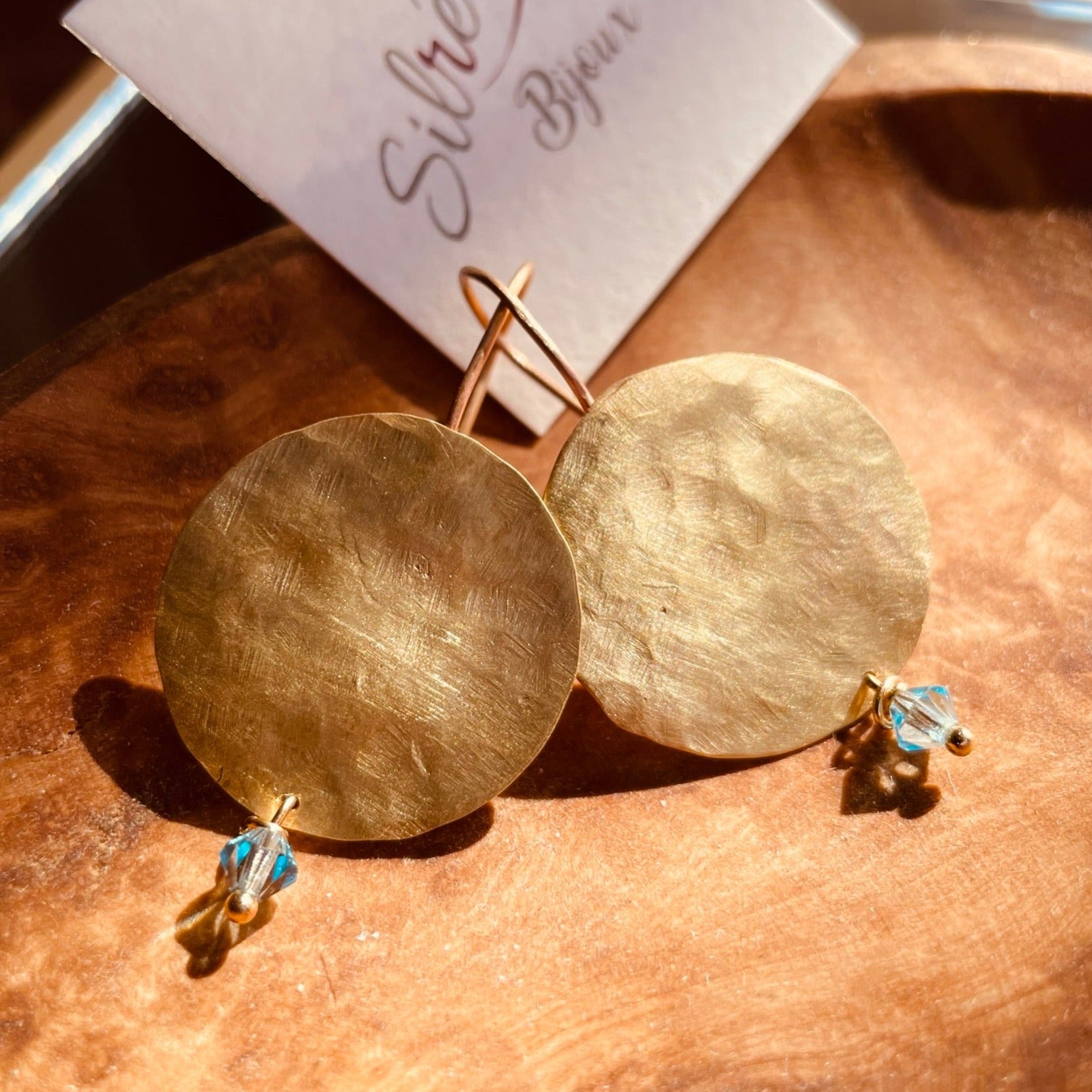 Orecchini pendenti in ottone satinato con pietra o cristallo